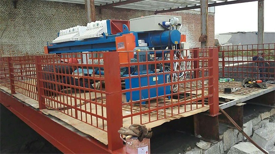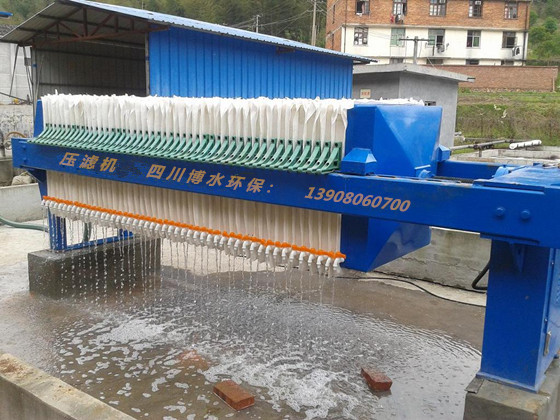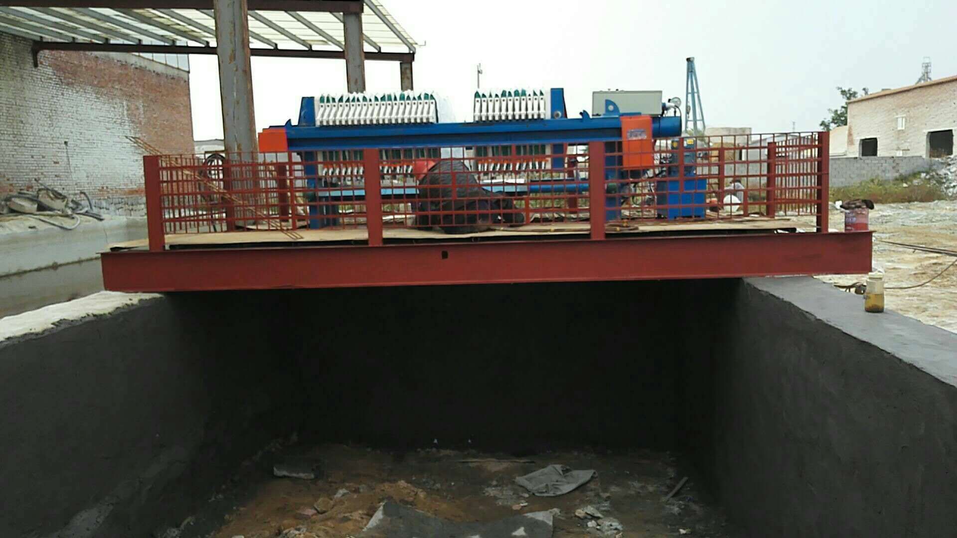 滤布装在滤板的两侧,在压紧装置的作用下,滤板被压紧在压紧板和止推板之间,每两块儿滤板之间形成了一个封闭的过滤空间,